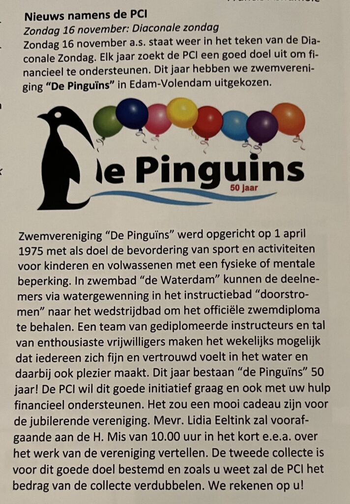 Namens alle leden, vrijwilligers en bestuur zwemvereniging De Pinguins